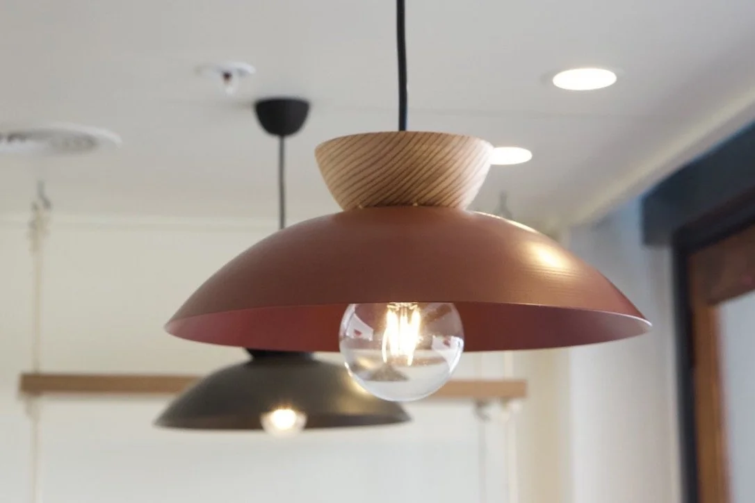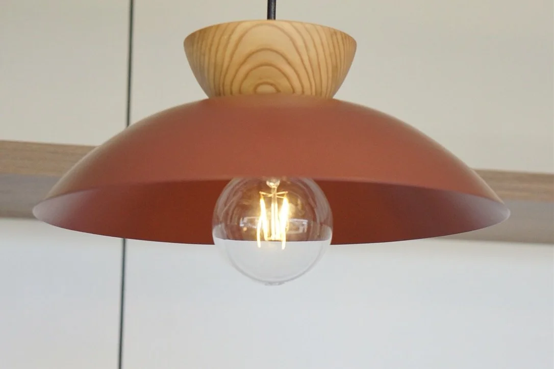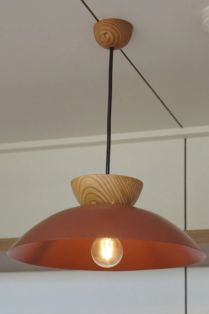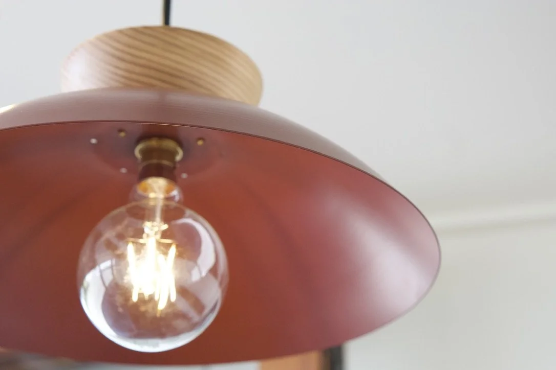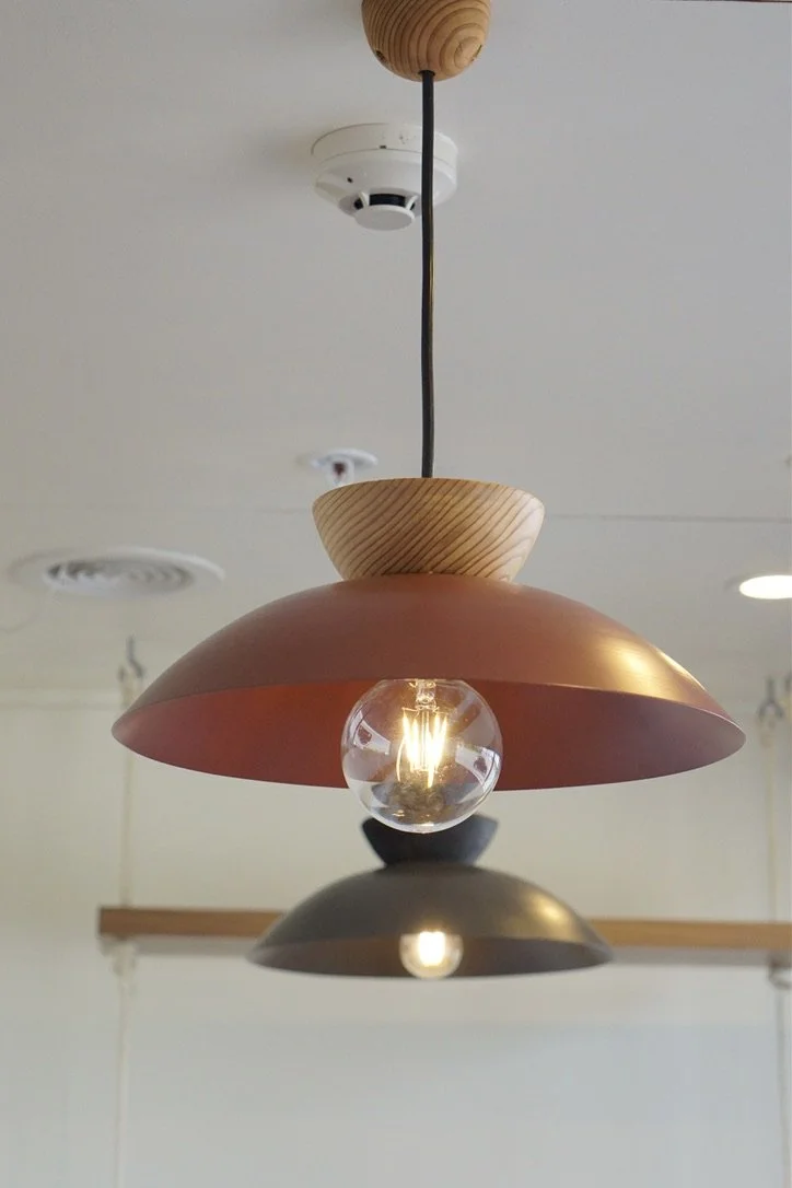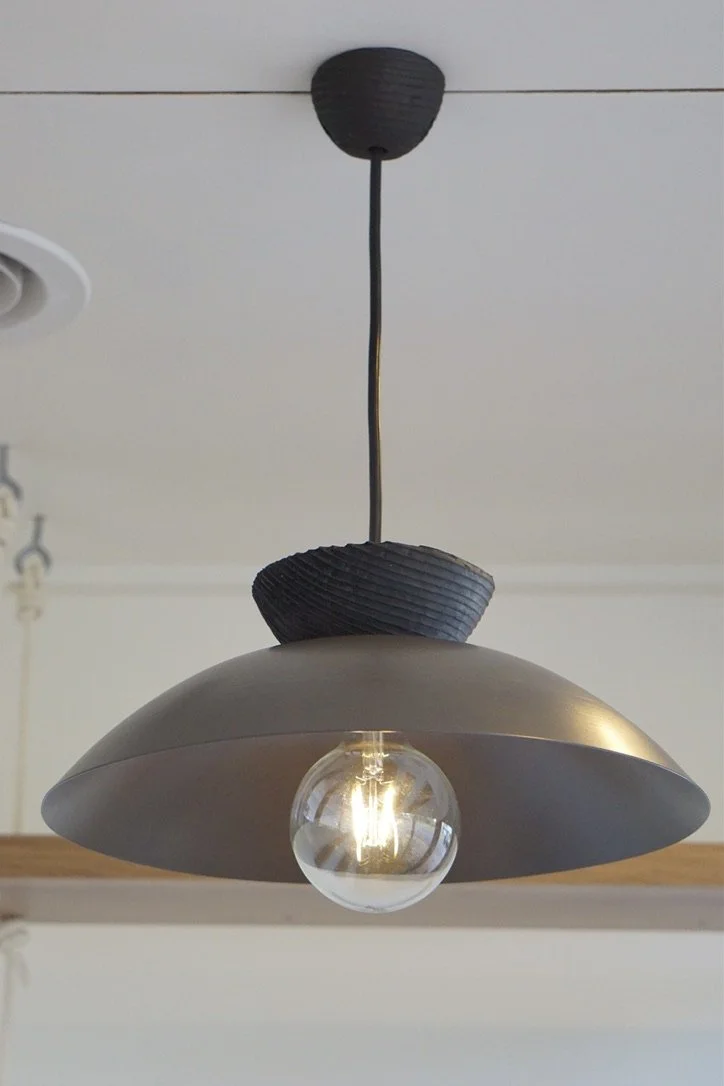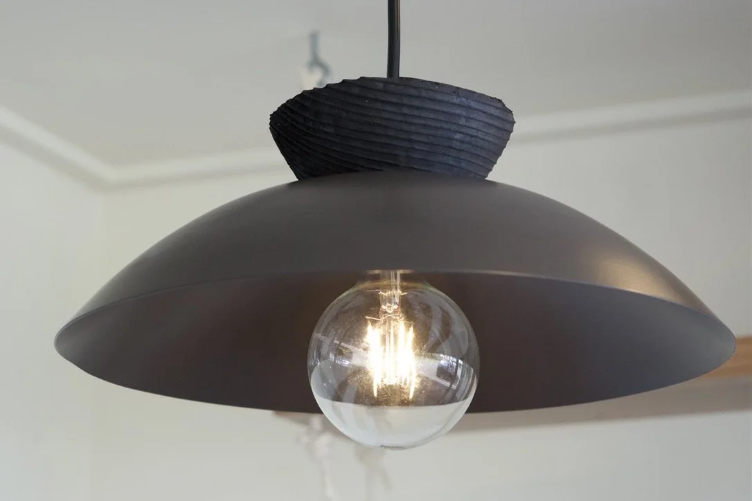 Original Pendant Spun steel, burnt sugi and brass. Designed and made in New Zealand Original pendant Matthew Bell Design
